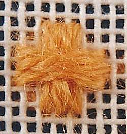 Check can be used to create the illusion of a meadow of daisies or a starry nght sky. It is fast to work and has a lot of impact on the canvas. The corners are void. Use Continental to fill the areas. Try stacking the stitches close together for a unique look.